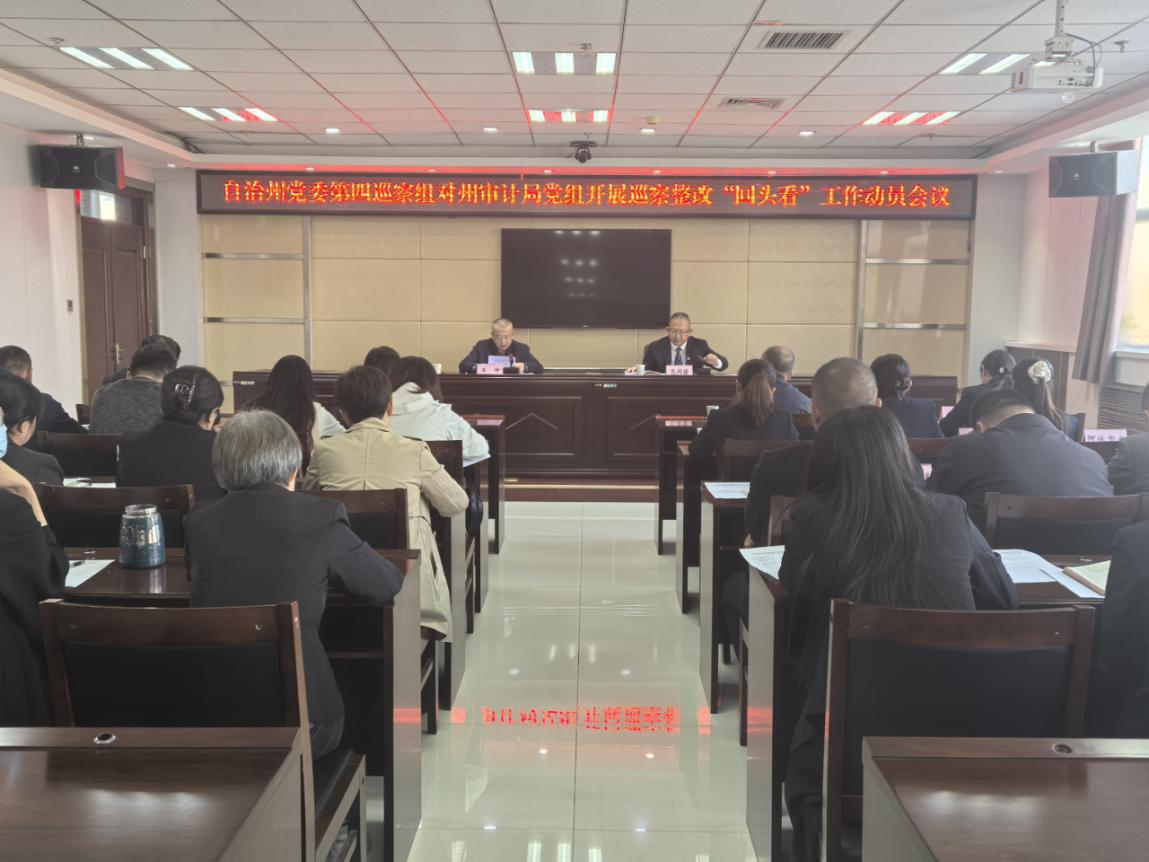 自治州党委第四巡察组全体人员,州审计局领导班子成员,州纪委监委派驻州政办纪检监察组负责同志、州纪委监委第二监督检查室负责同志出席会议,州财政局、州民政局、州融媒体中心三家服务对象、州审计局副科级以上干部及各县(市)审计局主要领导列席会议。