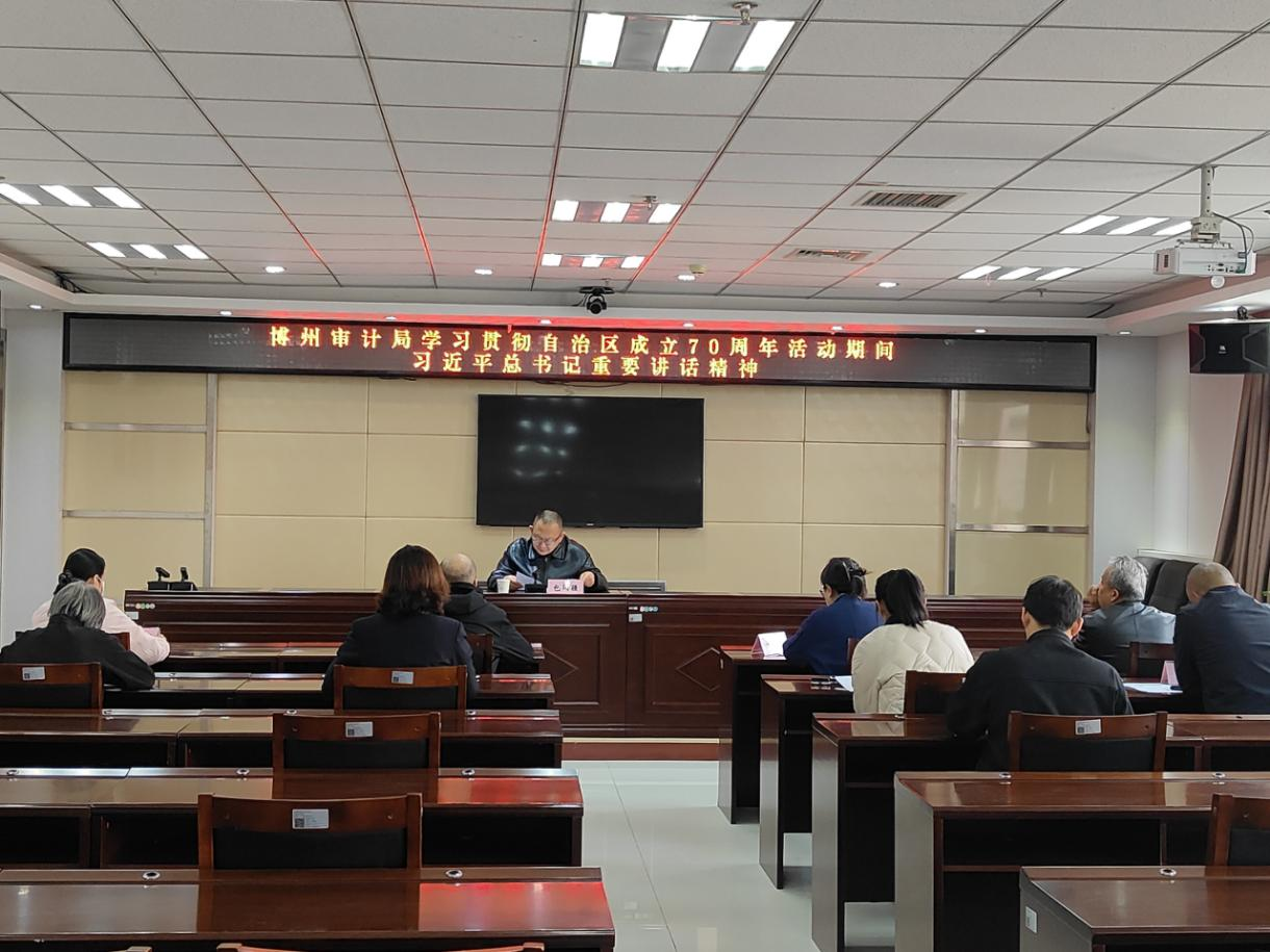 近期,博州审计局党组书记、副局长包闻疆召开专题会议组织全局未外出审计干部集中学习,会后开展学习研讨交流活动,大家结合自身工作实际,谈认识、谈体会、谈落实,纷纷表示要将习近平总书记重要指示精神贯穿到审计工作的全过程各环节,真正做到学深悟透、融会贯通、笃信笃行。