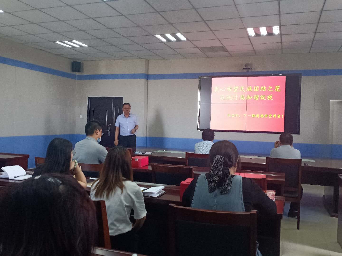 6月18日,博州统计局,开展了以“民族团结、从我做起”为主题的道德讲堂。本期道德讲堂旨在进一步提高全体干部职工的民族团结意识,以“民族团结、从我做起”为主题,围绕“唱歌曲、学模范、诵经典、谈感受、送吉祥、作点评”等六个环节开展。
