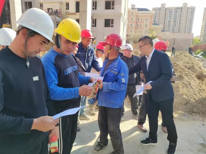 10月10日下午,博州住房公积金管理中心组织业务骨干深入和瑞·未来城E区、望厦二期等楼盘施工现场,开展公积金政策宣传活动,现场共有30余名农民工参与了此次宣讲。
