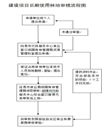 1.《中华人民共和国森林法实施条例》(国务院令第278号,根据2011年1月8日《国务院关于废止和修改部分行政法规的决定》修改)第十六条:勘查、开采矿藏和修建道路、水利、电力、通讯等工程,需要占用或者征收、征用林地的,必须遵守下列规定:(一)用地单位应当向县级以上人民政府林业主管部门提出用地申请,经审核同意后,按照国家规定的标准预交森林植被恢复费,领取使用林地审核同意书。用地单位凭使用林地审核同意书依法办理建设用地审批手续。占用或者征收、征用林地未经林业主管部门审核同意的,土地行政主管部门不得受理建设用地申请。(二)占用或者征收、征用防护林林地或者特种用途林林地面积10公顷以上的,用材林、经济林、薪炭林林地及其采伐迹地面积35公顷以上的,其他林地面积70公顷以上的,由国务院林业主管部门审核;占用或者征收、征用林地面积低于上述规定数量的,由省、自治区、直辖市人民政府林业主管部门审核。占用或者征收、征用重点林区的林地的,由国务院林业主管部门审核。 (三)用地单位需要采伐已经批准占用或者征收、征用的林地上的林木时,应当向林地所在地的县级以上地方人民政府林业主管部门或者国务院林业主管部门申请林木采伐许可证。(四)占用或者征收、征用林地未被批准的,有关林业主管部门应当自接到不予批准通知之日起7日内将收取的森林植被恢复费如数退还。 2.《关于规范建设项目使用林地审核审批行政许可有关事项的通知》(新林传发〔2018〕82号) |