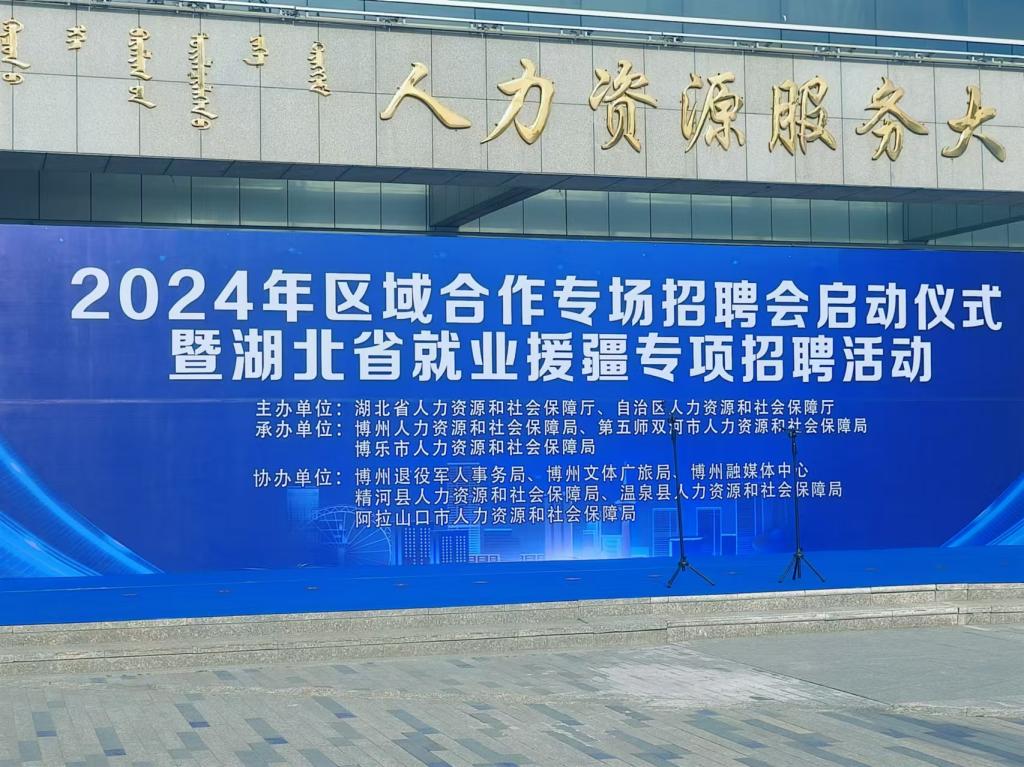 为积极响应国家关于稳就业、保民生的战略部署,进一步促进湖北省与新疆维吾尔自治区博乐市及周边地区的劳动力资源优化配置,加强区域间人才交流与合作。8月6日,湖北省人力资源和社会保障厅、自治区人力资源和社会保障厅联合主办,博州人社局、第五师双河市人社局、博乐市人社局联和承办,博州退役军人事务局、文体广旅局,博州融媒体中心,精河县人社局、温泉县人社局、阿拉山口市人社局共同协办——共同成功举办了“2024年湖北省就业专场招聘活动”。