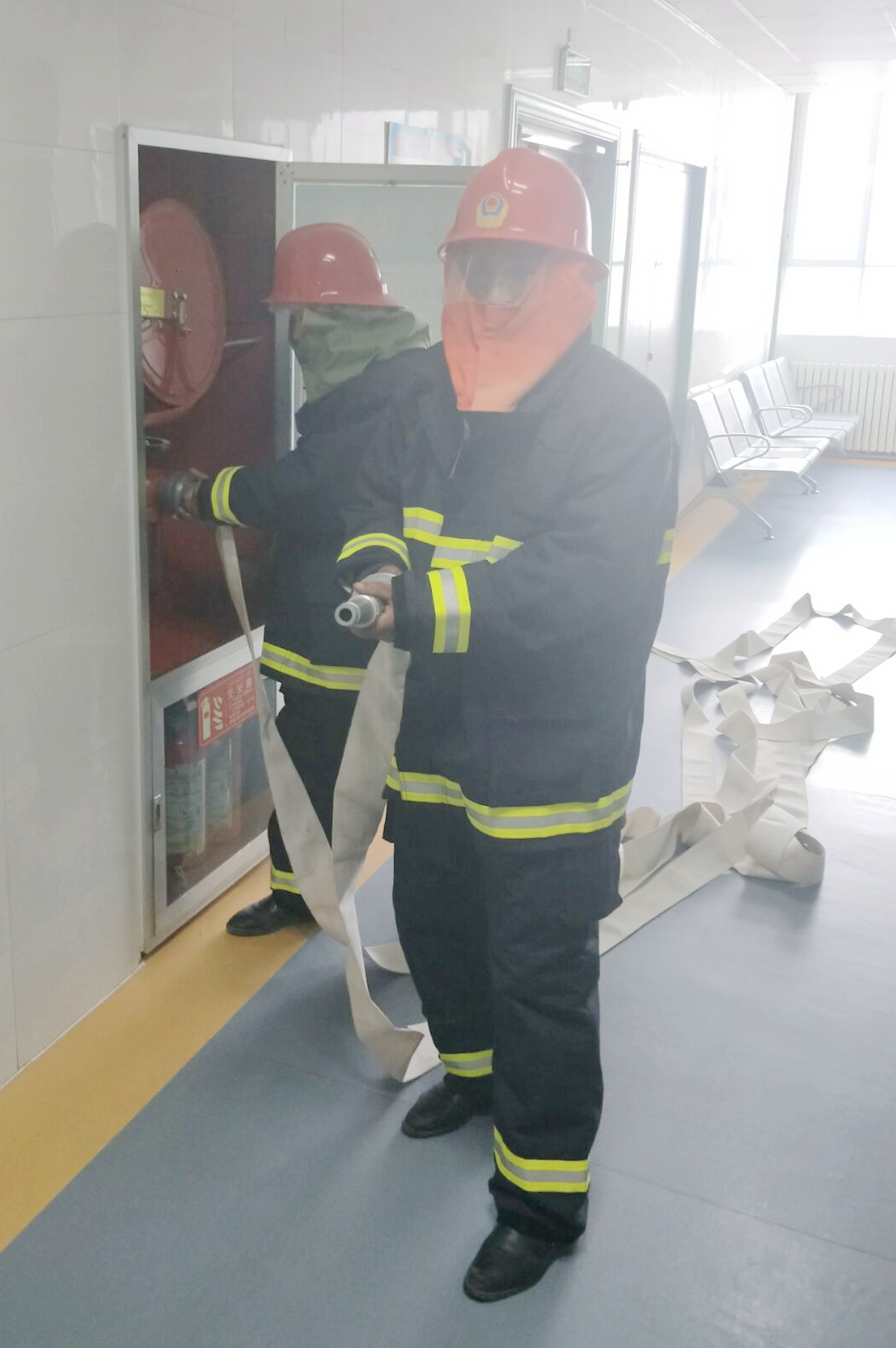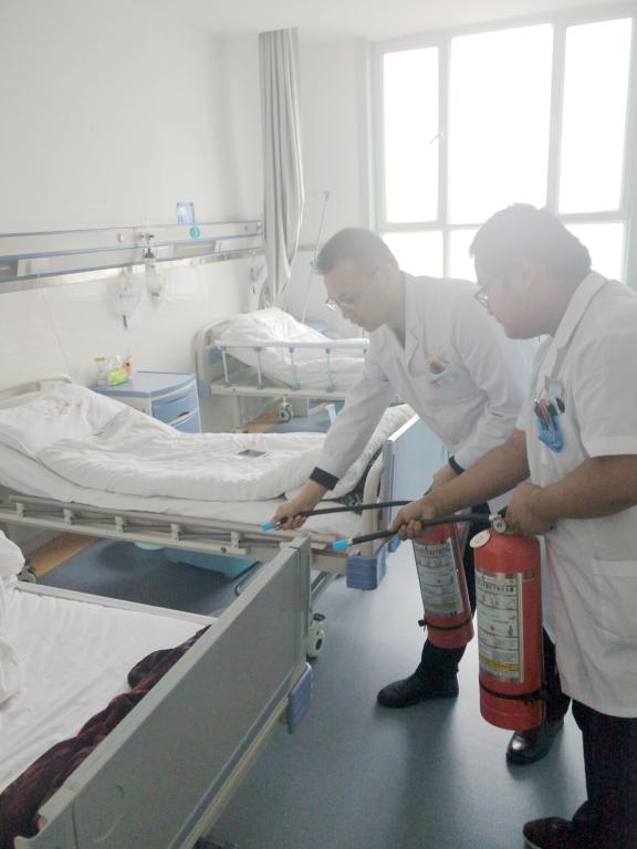 11月12日13:21分,自治州人民医院根据博州卫健委安排,组织州人民医院老年病内分泌科、医院保卫科消防控制室及保安人员联合进行消防应急疏散灭火演练,演练程序为发现火源--报警--第一梯队(医生组)就近利用灭火器灭火--护理组紧急疏散病区病人及家属--消防控制室人员带领保安人员着消防战斗服赶到科室启用消火栓进行灭火工作--火源扑灭,整个演练过程分工明确,职责清楚,紧张有序,忙而不乱,充分体现了职工有效应对突发事件的沉着冷静和良好的应急处置能力。