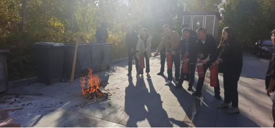 学习结束后,前往博乐市消防培训学校进行消防演练和消防安全知识讲解、模拟火灾现场逃生。博乐市消防培训学校讲师向干部职工介绍了常见的火灾隐患,并通过生活中的火灾典型案例介绍了火灾的危害性和预防措施并针对消防设施、器材的使用和日常维护、应急疏散逃生等方面进行详细讲解,让干部职工能够正确识别与使用。在灭火实战演练环节,每名党员进行灭火操作,面对燃烧的火堆,大家沉着冷静,运用学到的消防知识,迅速使用灭火器将火势控制并最终扑灭,进一步强化消防安全意识。