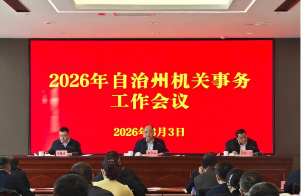 3月3日,全州机关事务工作会议召开。会议坚持以习近平新时代中国特色社会主义思想为指导,深入贯彻党的二十大和二十届历次全会精神,贯彻落实习近平总书记关于新疆工作的重要讲话重要指示批示精神和关于机关事务工作的重要指示精神,完整准确全面贯彻新时代党的治疆方略,坚持以铸牢中华民族共同体意识为主线,贯彻落实自治区党委十届十五次、自治州党委十三届十二次全会,自治区及自治州两会和全国、自治区机关事务工作会议精神,总结2025年自治州机关事务工作,安排部署2026年工作任务。州党委常委吾尔肯出席会议并讲话,州人民政府副州长阿力木江·肉孜主持会议,州机关事务管理局党组副书记、局长聂振龙作工作报告。