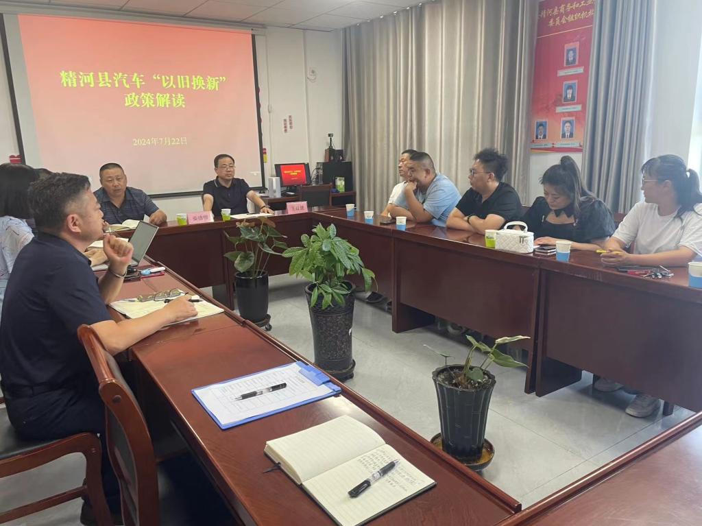 7月22日—23日,博州商务局赴博乐市和精河县召开2024年汽车、家电以旧换新政策宣传解读培训会。各县市商工局相关业务工作人员、汽车销售企业相关负责人、参加以旧换新活动的汽车和家电企业等40余人参加培训会。