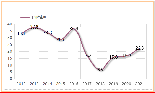 图1 2012-2021年博尔塔拉蒙古自治州工业增加值增速