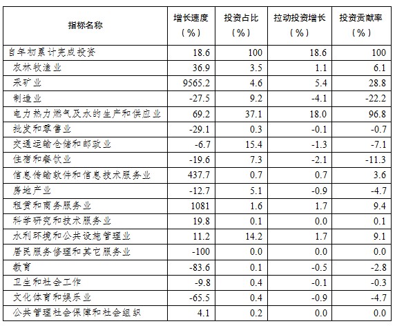 ——三大行业投资占比66.7%。电力热力燃气及水的生产和供应业、水利环境和公共设施管理业与交通运输仓储和邮政业累计完成投资占比66.7%,拉动全州投资增长18.4个百分点,投资贡献率98.8%。其中,电力热力燃气及水的生产和供应业主要受能源发电项目拉动;水利环境和公共设施管理业投资主要是基本农田水利、公共设施管理等项目,这些项目属于政府基础设施类项目,工程进度推进快。