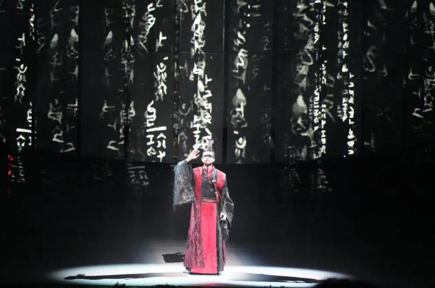 该剧以楚文化为创作源泉,通过跨越时空的音乐对话,生动展现千年文化的深厚内涵。舞台上方设计的竹简造型,既展现了古人“天圆地方”的理念,也渲染出浓厚的文化氛围;服装上以红黑碰撞为主,在视觉上形成强烈冲击,展现了楚人对宇宙万物的认知与理解;在配乐中,融入诸多楚辞内容,编钟的加入则增添了历史厚重感。此外,1:1复刻的曾侯乙编钟、钟磬、虎座凤架双面鼓等古典乐器也被搬上舞台。